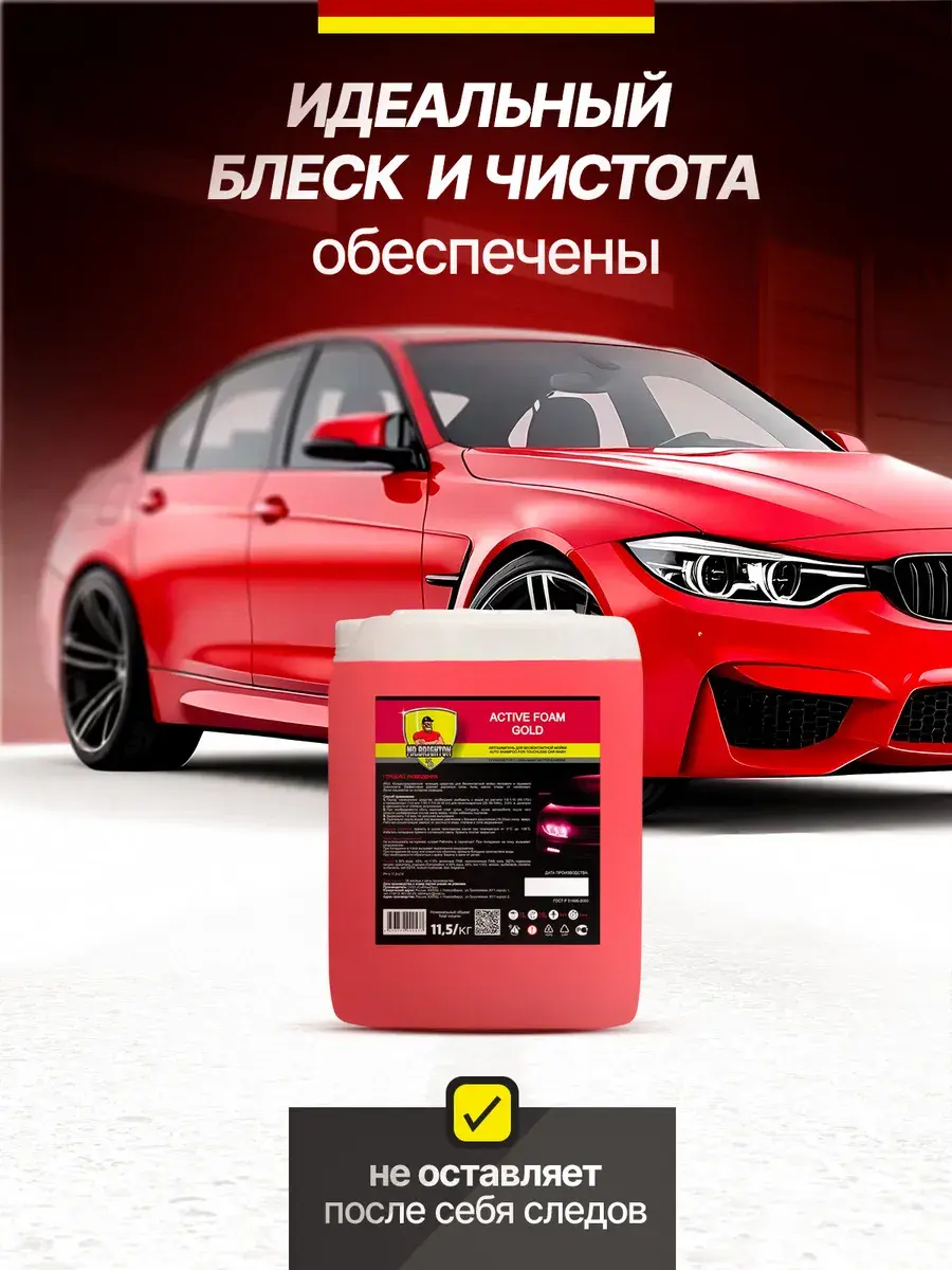 Автошампунь из коллекции бренда Mr.Brighton - прекрасно очищающее средство для бесконтактной мойки. Качественная автохимия подходит для мойки высокого давления - пеногенератора с распылителем - пенообразователем. Обработка пеной не портит лакокрасочное покрытие и хромированные автомобильные детали. Концентрат с густой и плотной пенкой равномерно покрывает поверхность автомобиля, справляется даже со стойкими загрязнениями. Моющее средство с активной формулой эффективно удаляет дорожную пыль, следы от насекомых, масло и белый налет, быстро смывается водой без разводов, дарит покрытиям приятный блеск. Автокосметику с уровнем от pH 11.5 и выше используют с водой любой жесткости, применяют в любое время года: летний и зимний, осенний и весенний период. Профессиональный автотовар заменяет мытье в автомойке подходит для очистки любого типа автотранспорта: легкового или грузового. Концентрированный очиститель с эффективной для удаления загрязнений моющей автопеной и приятным ароматом - надежный помощник автомобилиста. Универсальное чистящее средство для ухода за машиной - отличный знак внимания для автолюбителя - мужчины на любой праздник: Новый год, 23 Февраля (День защитника Отечества) или День отца. В коллекции бренда представлены автошампуни в больших пластиковых канистрах объемом 20 литров, 10 литров, 5 литров и в бутылках объемом 1 литр, чтобы вы могли выбрать идеально подходящую для ваших задач упаковку. Запаянное горлышко - защита от проливания и гарантия качества от производителя! Не используйте автокосметику на горячем кузове грузовика или легковушки и работайте в защитных перчатках. Храните автохимию объемом 1л или 5л, 10л, 20л в местах, где ее не найдут дети. Производство Россия. У нас есть акции и распродажи, вы можете купить наши товары в подарок со скидкой!