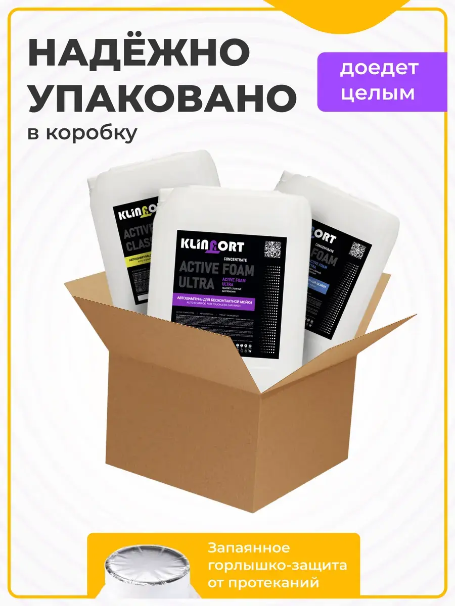 Автошампунь KLINFORT - прекрасно очищающее средство для бесконтактной мойки. Качественная автохимия подходит для мойки высокого давления - пеногенератора с распылителем - пенообразователем. Обработка пеной не портит лакокрасочное покрытие и хромированные автомобильные детали. Концентрат с густой и плотной пенкой равномерно покрывает поверхность автомобиля, справляется даже со стойкими загрязнениями. Моющее средство с активной формулой эффективно удаляет дорожную пыль, следы от насекомых, масло и белый налет, быстро смывается водой без разводов, дарит покрытиям приятный блеск. Автокосметику с уровнем от pH 11.5 и выше используют с водой любой жесткости, применяют в любое время года: летний и зимний, осенний и весенний период. Профессиональный автотовар заменяет мытье в автомойке подходит для очистки любого типа автотранспорта: легкового или грузового. Концентрированный очиститель с эффективной для удаления загрязнений моющей автопеной и приятным ароматом - надежный помощник автомобилиста. Универсальное чистящее средство для ухода за машиной - отличный знак внимания для автолюбителя - мужчины на любой праздник: Новый год, 23 Февраля (День защитника Отечества) или День отца. В коллекции бренда представлены автошампуни в больших пластиковых канистрах объемом 20 литров, 5 литров, чтобы вы могли выбрать идеально подходящую для ваших задач упаковку. Запаянное горлышко - защита от проливания и гарантия качества от производителя! Не используйте автокосметику на горячем кузове грузовика или легковушки и работайте в защитных перчатках. Храните автохимию объемом или 5л, 20л в местах, где ее не найдут дети. Производство Россия. У нас есть акции и распродажи, вы можете купить наши товары в подарок со скидкой!