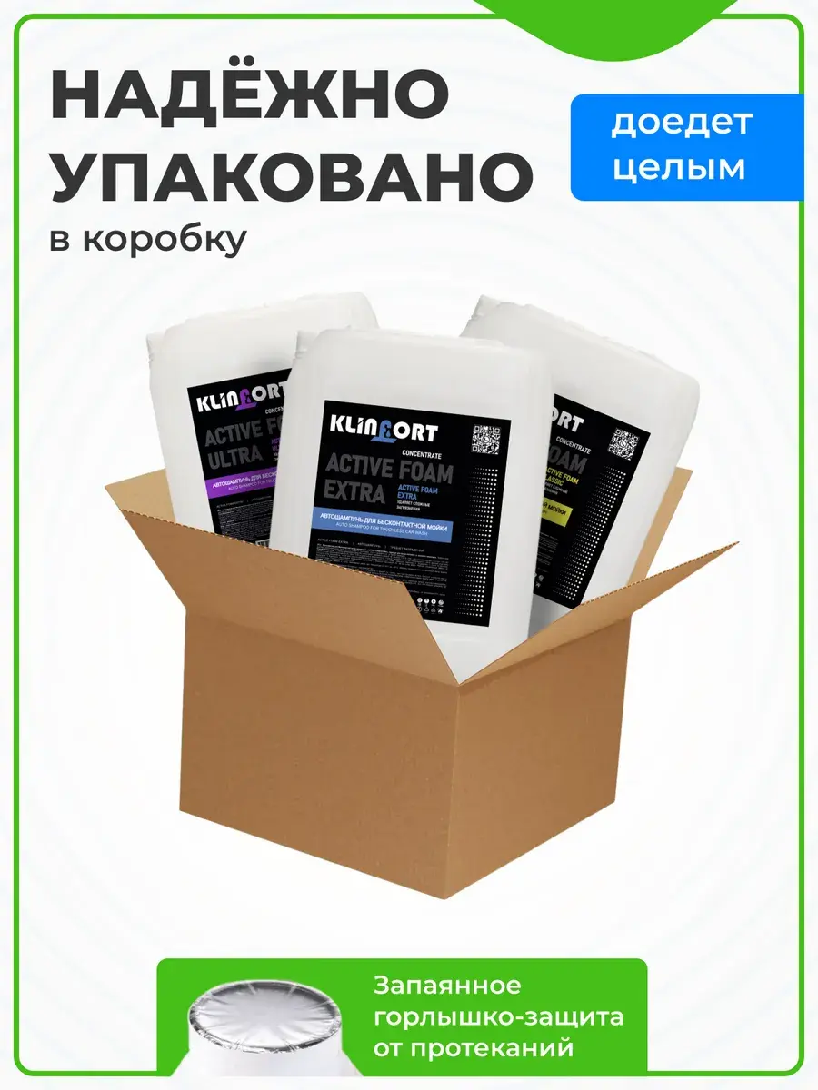 Автошампунь KLINFORT - прекрасно очищающее средство для бесконтактной мойки. Качественная автохимия подходит для мойки высокого давления - пеногенератора с распылителем - пенообразователем. Обработка пеной не портит лакокрасочное покрытие и хромированные автомобильные детали. Концентрат с густой и плотной пенкой равномерно покрывает поверхность автомобиля, справляется даже со стойкими загрязнениями. Моющее средство с активной формулой эффективно удаляет дорожную пыль, следы от насекомых, масло и белый налет, быстро смывается водой без разводов, дарит покрытиям приятный блеск. Автокосметику с уровнем от pH 11.5 и выше используют с водой любой жесткости, применяют в любое время года: летний и зимний, осенний и весенний период. Профессиональный автотовар заменяет мытье в автомойке подходит для очистки любого типа автотранспорта: легкового или грузового. Концентрированный очиститель с эффективной для удаления загрязнений моющей автопеной и приятным ароматом - надежный помощник автомобилиста. Универсальное чистящее средство для ухода за машиной - отличный знак внимания для автолюбителя - мужчины на любой праздник: Новый год, 23 Февраля (День защитника Отечества) или День отца. В коллекции бренда представлены автошампуни в больших пластиковых канистрах объемом 20 литров, 5 литров, чтобы вы могли выбрать идеально подходящую для ваших задач упаковку. Запаянное горлышко - защита от проливания и гарантия качества от производителя! Не используйте автокосметику на горячем кузове грузовика или легковушки и работайте в защитных перчатках. Храните автохимию объемом или 5л, 20л в местах, где ее не найдут дети. Производство Россия. У нас есть акции и распродажи, вы можете купить наши товары в подарок со скидкой!