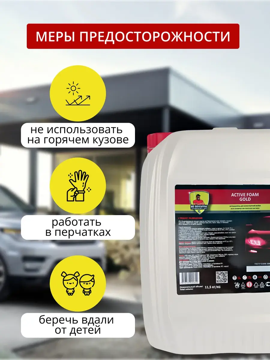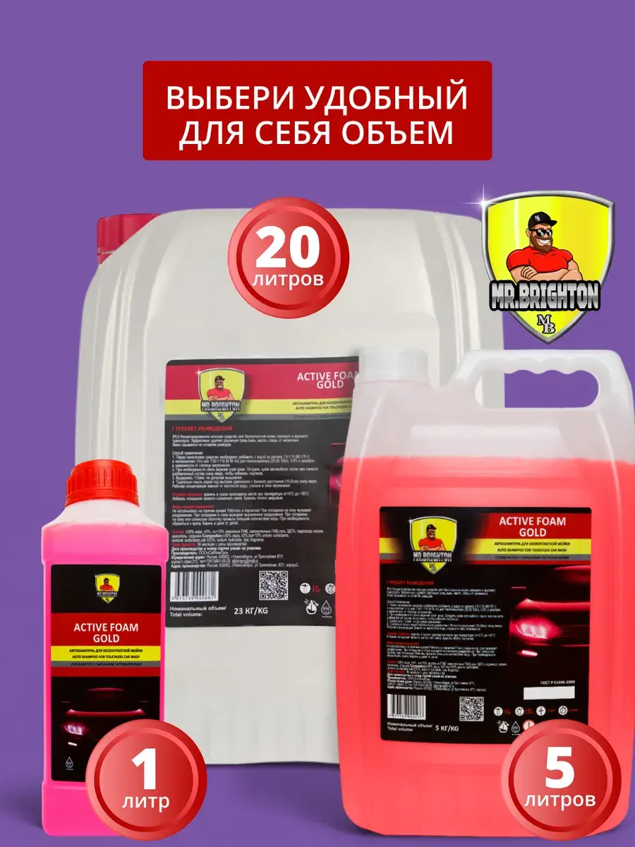 Автошампунь из коллекции бренда Mr.Brighton - прекрасно очищающее средство для бесконтактной мойки. Качественная автохимия подходит для мойки высокого давления - пеногенератора с распылителем - пенообразователем. Обработка пеной не портит лакокрасочное покрытие и хромированные автомобильные детали. Концентрат с густой и плотной пенкой равномерно покрывает поверхность автомобиля, справляется даже со стойкими загрязнениями. Моющее средство с активной формулой эффективно удаляет дорожную пыль, следы от насекомых, масло и белый налет, быстро смывается водой без разводов, дарит покрытиям приятный блеск. Автокосметику с уровнем от pH 11.5 и выше используют с водой любой жесткости, применяют в любое время года: летний и зимний, осенний и весенний период. Профессиональный автотовар заменяет мытье в автомойке подходит для очистки любого типа автотранспорта: легкового или грузового. Концентрированный очиститель с эффективной для удаления загрязнений моющей автопеной и приятным ароматом - надежный помощник автомобилиста. Универсальное чистящее средство для ухода за машиной - отличный знак внимания для автолюбителя - мужчины на любой праздник: Новый год, 23 Февраля (День защитника Отечества) или День отца. В коллекции бренда представлены автошампуни в больших пластиковых канистрах объемом 20 литров, 5 литров и в бутылках объемом 1 литр, чтобы вы могли выбрать идеально подходящую для ваших задач упаковку. Запаянное горлышко - защита от проливания и гарантия качества от производителя! Не используйте автокосметику на горячем кузове грузовика или легковушки и работайте в защитных перчатках. Храните автохимию объемом 1л или 5л, 20л в местах, где ее не найдут дети. Производство Россия. У нас есть акции и распродажи, вы можете купить наши товары в подарок со скидкой!