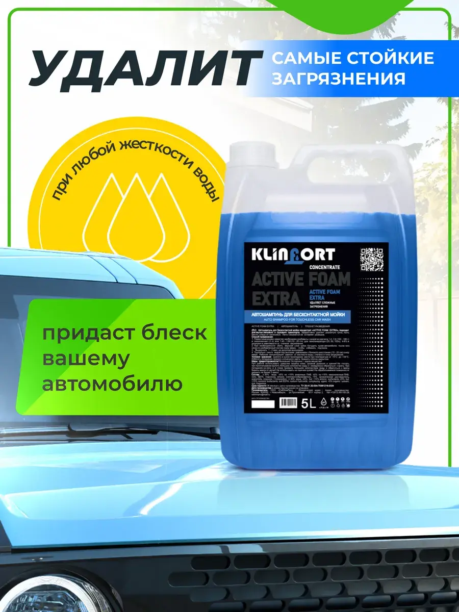 Автошампунь KLINFORT - прекрасно очищающее средство для бесконтактной мойки. Качественная автохимия подходит для мойки высокого давления - пеногенератора с распылителем - пенообразователем. Обработка пеной не портит лакокрасочное покрытие и хромированные автомобильные детали. Концентрат с густой и плотной пенкой равномерно покрывает поверхность автомобиля, справляется даже со стойкими загрязнениями. Моющее средство с активной формулой эффективно удаляет дорожную пыль, следы от насекомых, масло и белый налет, быстро смывается водой без разводов, дарит покрытиям приятный блеск. Автокосметику с уровнем от pH 11.5 и выше используют с водой любой жесткости, применяют в любое время года: летний и зимний, осенний и весенний период. Профессиональный автотовар заменяет мытье в автомойке подходит для очистки любого типа автотранспорта: легкового или грузового. Концентрированный очиститель с эффективной для удаления загрязнений моющей автопеной и приятным ароматом - надежный помощник автомобилиста. Универсальное чистящее средство для ухода за машиной - отличный знак внимания для автолюбителя - мужчины на любой праздник: Новый год, 23 Февраля (День защитника Отечества) или День отца. В коллекции бренда представлены автошампуни в больших пластиковых канистрах объемом 5 литров, 20 литров, чтобы вы могли выбрать идеально подходящую для ваших задач упаковку. Запаянное горлышко - защита от проливания и гарантия качества от производителя! Не используйте автокосметику на горячем кузове грузовика или легковушки и работайте в защитных перчатках. Храните автохимию объемом или 5л, 20л в местах, где ее не найдут дети. Производство Россия. У нас есть акции и распродажи, вы можете купить наши товары в подарок со скидкой!