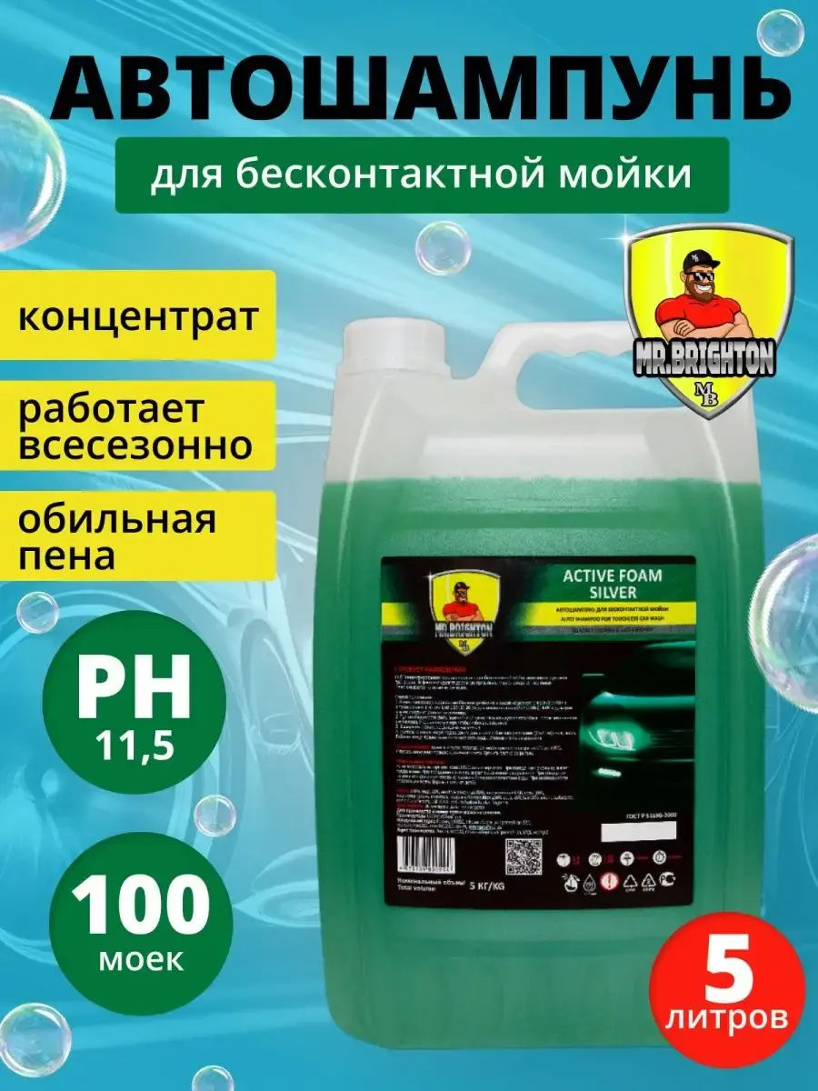 Автошампунь из коллекции бренда Mr.Brighton - прекрасно очищающее средство для бесконтактной мойки. Качественная автохимия подходит для мойки высокого давления - пеногенератора с распылителем - пенообразователем. Обработка пеной не портит лакокрасочное покрытие и хромированные автомобильные детали. Концентрат с густой и плотной пенкой равномерно покрывает поверхность автомобиля, справляется даже со стойкими загрязнениями. Моющее средство с активной формулой эффективно удаляет дорожную пыль, следы от насекомых, масло и белый налет, быстро смывается водой без разводов, дарит покрытиям приятный блеск. Автокосметику с уровнем pH 11.5 (также у нас есть концентрат pH 14 с антикоррозийными компонентами для технологического транспорта) используют с водой любой жесткости, применяют в любое время года: летний и зимний, осенний и весенний период. Профессиональный автотовар заменяет мытье в автомойке подходит для очистки любого типа автотранспорта: легкового или грузового, рассчитан на 100 или 20 моек машины (в зависимости от объема концентрата, который вы выберете). Концентрированный очиститель с эффективной для удаления загрязнений моющей автопеной и приятным ароматом - надежный помощник автомобилиста. Универсальное чистящее средство для ухода за машиной - отличный знак внимания для автолюбителя - мужчины на любой праздник: Новый год, 23 Февраля (День защитника Отечества) или День отца. В коллекции бренда представлены автошампуни в больших пластиковых канистрах объемом 5 литров и в бутылках объемом 1 литр, чтобы вы могли выбрать идеально подходящую для ваших задач упаковку. Запаянное горлышко - защита от проливания и гарантия качества от производителя! Не используйте автокосметику на горячем кузове грузовика или легковушки и работайте в защитных перчатках. Храните автохимию объемом 1л или 5л в местах, где ее не найдут дети. Производство Россия. У нас есть акции и распродажи, вы можете купить наши товары в подарок со скидкой!
