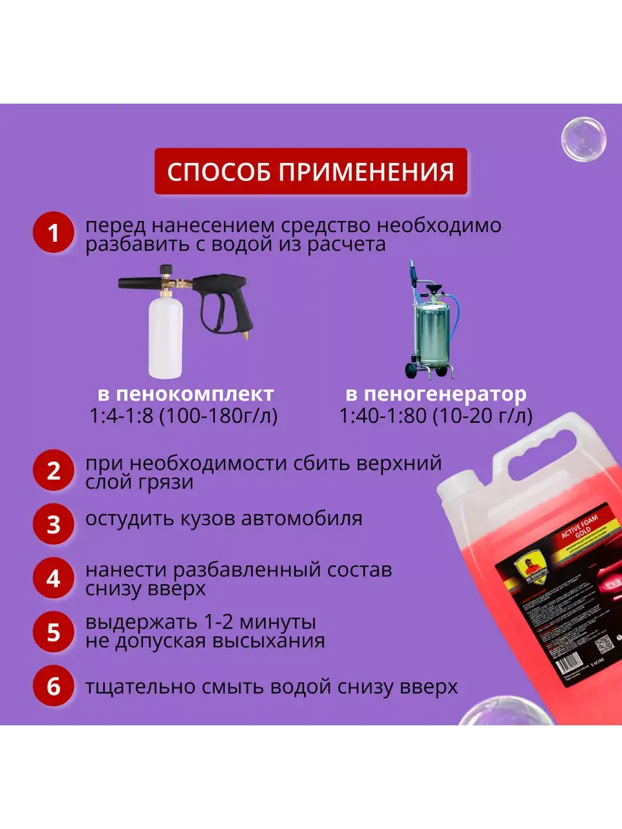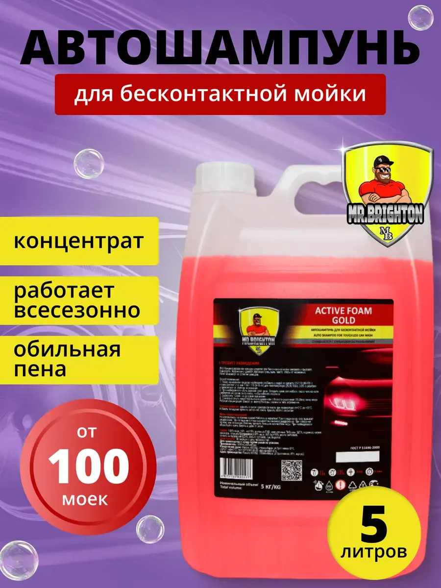Автошампунь из коллекции бренда Mr.Brighton - прекрасно очищающее средство для бесконтактной мойки. Качественная автохимия подходит для мойки высокого давления - пеногенератора с распылителем - пенообразователем. Обработка пеной не портит лакокрасочное покрытие и хромированные автомобильные детали. Концентрат с густой и плотной пенкой равномерно покрывает поверхность автомобиля, справляется даже со стойкими загрязнениями. Моющее средство с активной формулой эффективно удаляет дорожную пыль, следы от насекомых, масло и белый налет, быстро смывается водой без разводов, дарит покрытиям приятный блеск. Автокосметику с уровнем pH 11.5 (также у нас есть концентрат pH 14 с антикоррозийными компонентами для технологического транспорта) используют с водой любой жесткости, применяют в любое время года: летний и зимний, осенний и весенний период. Профессиональный автотовар заменяет мытье в автомойке подходит для очистки любого типа автотранспорта: легкового или грузового, рассчитан на 110 или 22 моек машины (в зависимости от объема концентрата, который вы выберете). Концентрированный очиститель с эффективной для удаления загрязнений моющей автопеной и приятным ароматом - надежный помощник автомобилиста. Универсальное чистящее средство для ухода за машиной - отличный знак внимания для автолюбителя - мужчины на любой праздник: Новый год, 23 Февраля (День защитника Отечества) или День отца. В коллекции бренда представлены автошампуни в больших пластиковых канистрах объемом 5 литров и в бутылках объемом 1 литр, чтобы вы могли выбрать идеально подходящую для ваших задач упаковку. Запаянное горлышко - защита от проливания и гарантия качества от производителя! Не используйте автокосметику на горячем кузове грузовика или легковушки и работайте в защитных перчатках. Храните автохимию объемом 1л или 5л в местах, где ее не найдут дети. Производство Россия. У нас есть акции и распродажи, вы можете купить наши товары в подарок со скидкой!