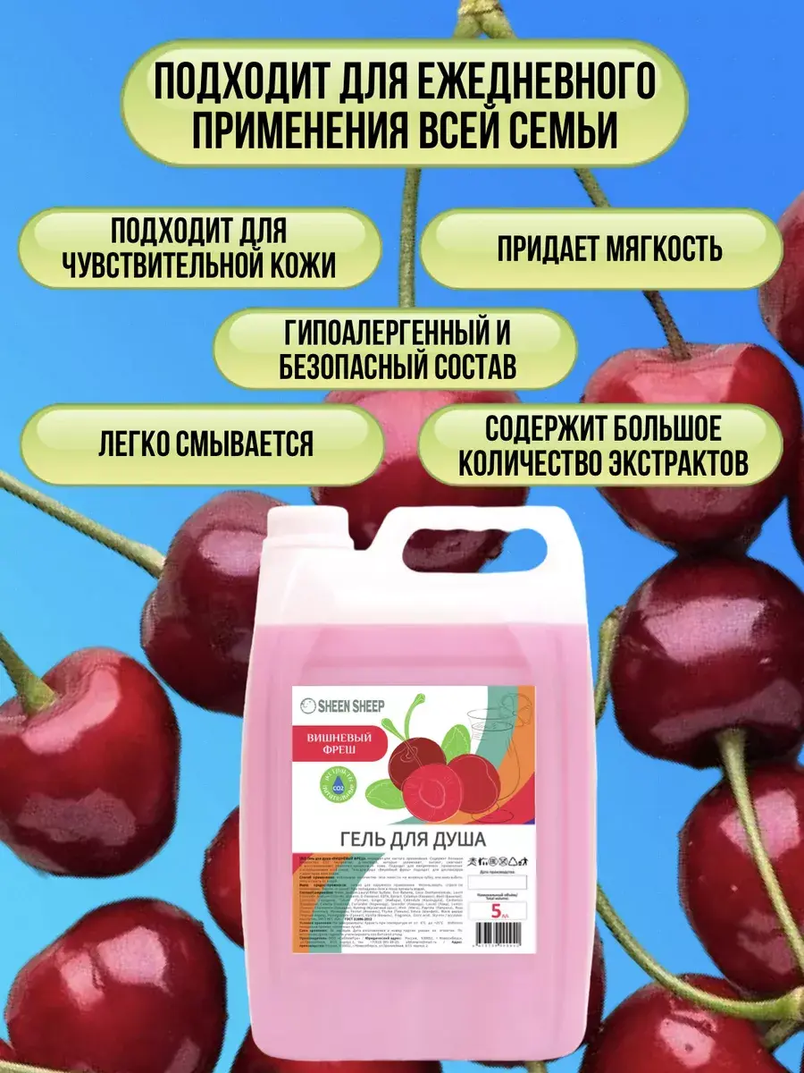 Увлажняющий гель для душа из коллекции бренда SHEEN SHEEP 5л - гипоаллергенное косметическое средство гигиены для очищения кожи, тела и лица. Его уникальный состав содержит натуральные ингредиенты, которые не только очищают, но и увлажняют, кожу, дарят ей невероятную мягкость и гладкость. Он имеет приятный аромат, идеален как для женщин, так и для мужчин, а также является источником расслабления и наслаждения. Его мягкая парфюмированная формула обладает тонизирующим действием, легко распределяется по всему телу, образуя густую пену, которая нежно очищает, удаляя загрязнения. Нейтральный Ph подходит для ежедневного ухода за кожей: тела, рук и лица. Косметический продукт хорошо пенится и полностью смывается, может быть использован всей семьей. Все компоненты безопасны для интимной гигиены и мытья детей. Гель для душа можно применять для жирной, нормальной и сухой кожи, он не вызывает раздражения и сухости, а консистенция удивительно густая, что уменьшает его расход. СПОСОБ ПРИМЕНЕНИЯ: нанести средство на ладонь или мочалку, предварительно смочив водой, и распределите массирующими движениями по телу до образования пены, затем смойте. Продукт для ежедневного мытья в душевой кабине или ванной во время купания, наслаждайтесь его нежным ароматом на основе качественной отдушки в виде парфюмированной композиции. Крем гель для всей семьи это гипоаллергенное средство абсолютно безопасен в использовании как для женщин, так и для мужчин. Объем 5 литров, это отличный вариант, который поможет сэкономить ваш бюджет. Гель изготовлен только из органических, увлажняющих компонентов, что делает его лучшим выбором для тех, кто ценит натуральный уход за кожей с заботой о природе. Большая канистра позволяет использовать в гостиницах, отелях, спортзалах, в бане.
