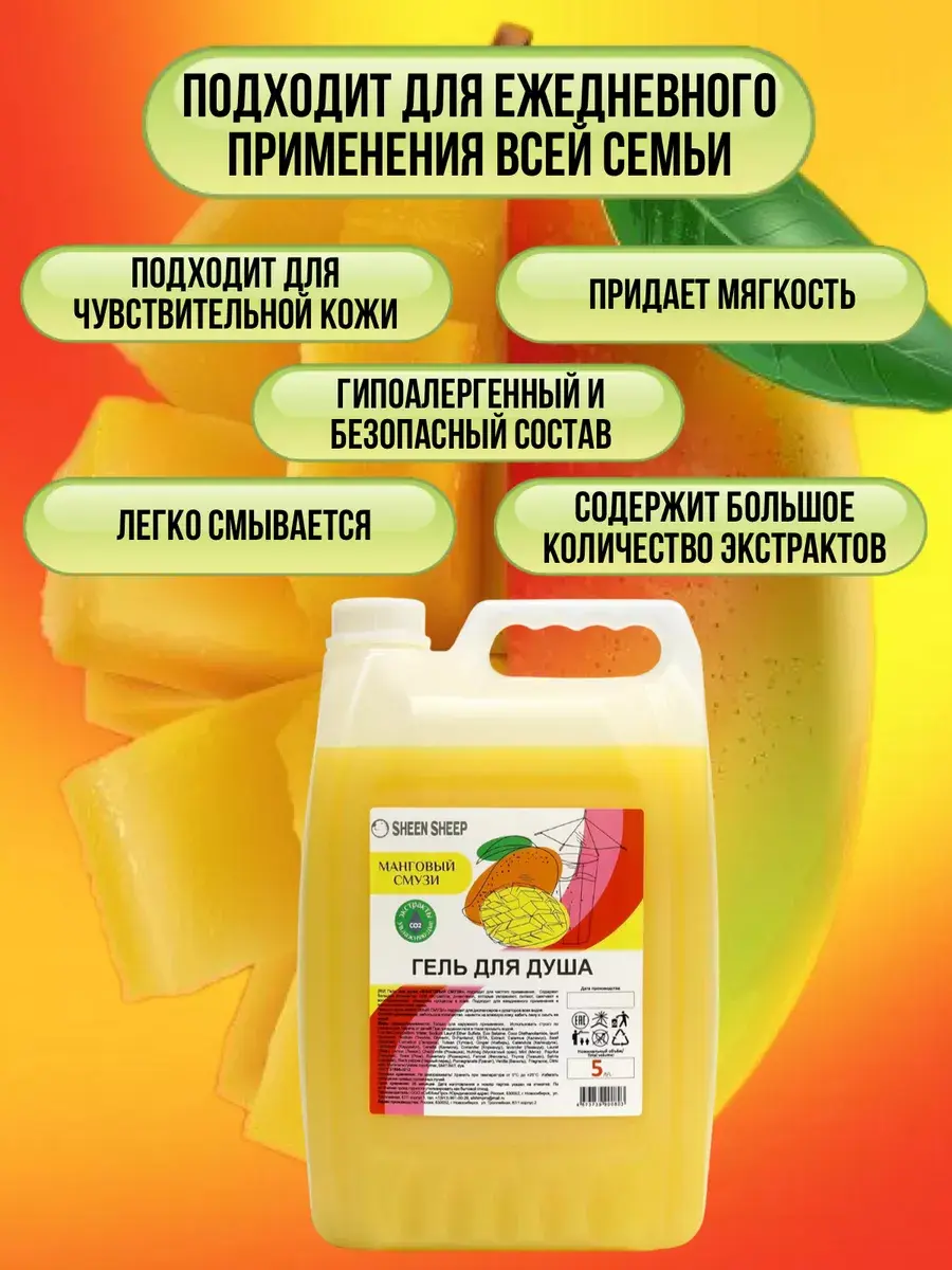 Увлажняющий гель для душа из коллекции бренда SHEEN SHEEP 5л - гипоаллергенное косметическое средство гигиены для очищения кожи, тела и лица. Его уникальный состав содержит натуральные ингредиенты, которые не только очищают, но и увлажняют, кожу, дарят ей невероятную мягкость и гладкость. Он имеет приятный аромат, идеален как для женщин, так и для мужчин, а также является источником расслабления и наслаждения. Его мягкая парфюмированная формула обладает тонизирующим действием, легко распределяется по всему телу, образуя густую пену, которая нежно очищает, удаляя загрязнения. Нейтральный Ph подходит для ежедневного ухода за кожей: тела, рук и лица. Косметический продукт хорошо пенится и полностью смывается, может быть использован всей семьей. Все компоненты безопасны для интимной гигиены и мытья детей. Гель для душа можно применять для жирной, нормальной и сухой кожи, он не вызывает раздражения и сухости, а консистенция удивительно густая, что уменьшает его расход. СПОСОБ ПРИМЕНЕНИЯ: нанести средство на ладонь или мочалку, предварительно смочив водой, и распределите массирующими движениями по телу до образования пены, затем смойте. Продукт для ежедневного мытья в душевой кабине или ванной во время купания, наслаждайтесь его нежным ароматом на основе качественной отдушки в виде парфюмированной композиции. Крем гель для всей семьи это гипоаллергенное средство абсолютно безопасен в использовании как для женщин, так и для мужчин. Объем 5 литров, это отличный вариант, который поможет сэкономить ваш бюджет. Гель изготовлен только из органических, увлажняющих компонентов, что делает его лучшим выбором для тех, кто ценит натуральный уход за кожей с заботой о природе. Большая канистра позволяет использовать в гостиницах, отелях, спортзалах, в бане.