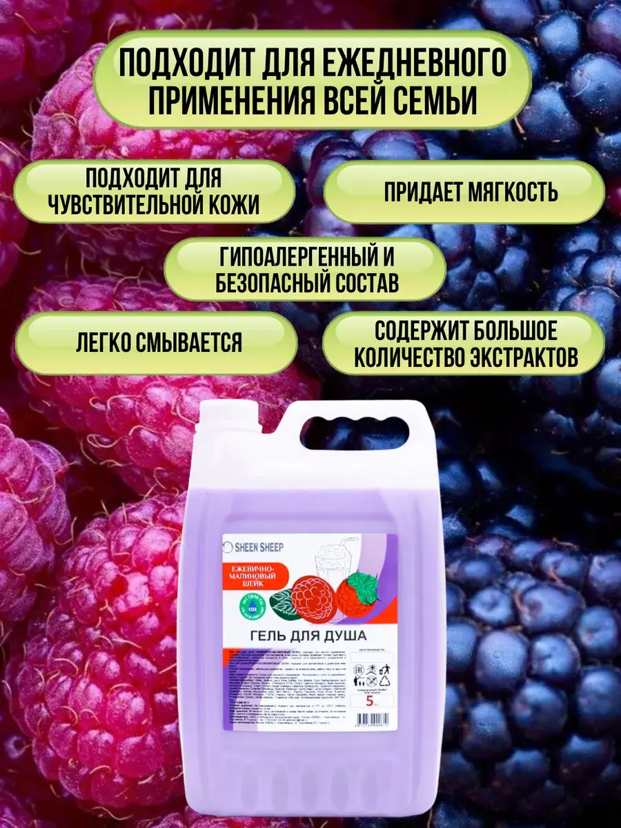Увлажняющий гель для душа из коллекции бренда SHEEN SHEEP 5л - гипоаллергенное косметическое средство гигиены для очищения кожи, тела и лица. Его уникальный состав содержит натуральные ингредиенты, которые не только очищают, но и увлажняют, кожу, дарят ей невероятную мягкость и гладкость. Он имеет приятный аромат, идеален как для женщин, так и для мужчин, а также является источником расслабления и наслаждения. Его мягкая парфюмированная формула обладает тонизирующим действием, легко распределяется по всему телу, образуя густую пену, которая нежно очищает, удаляя загрязнения. Нейтральный Ph подходит для ежедневного ухода за кожей: тела, рук и лица. Косметический продукт хорошо пенится и полностью смывается, может быть использован всей семьей. Все компоненты безопасны для интимной гигиены и мытья детей. Гель для душа можно применять для жирной, нормальной и сухой кожи, он не вызывает раздражения и сухости, а консистенция удивительно густая, что уменьшает его расход. СПОСОБ ПРИМЕНЕНИЯ: нанести средство на ладонь или мочалку, предварительно смочив водой, и распределите массирующими движениями по телу до образования пены, затем смойте. Продукт для ежедневного мытья в душевой кабине или ванной во время купания, наслаждайтесь его нежным ароматом на основе качественной отдушки в виде парфюмированной композиции. Крем гель для всей семьи это гипоаллергенное средство абсолютно безопасен в использовании как для женщин, так и для мужчин. Объем 5 литров, это отличный вариант, который поможет сэкономить ваш бюджет. Гель изготовлен только из органических, увлажняющих компонентов, что делает его лучшим выбором для тех, кто ценит натуральный уход за кожей с заботой о природе. Большая канистра позволяет использовать в гостиницах, отелях, спортзалах, в бане.