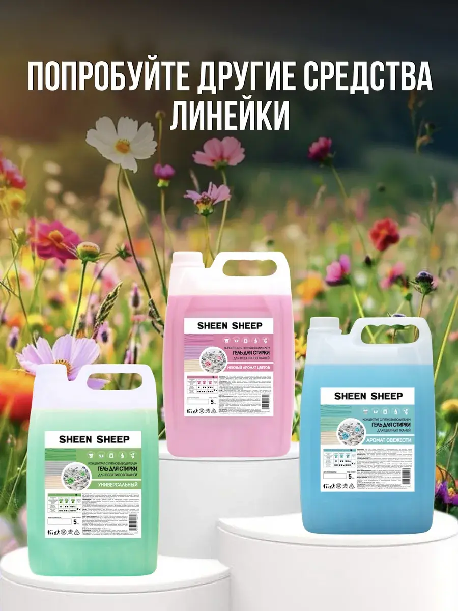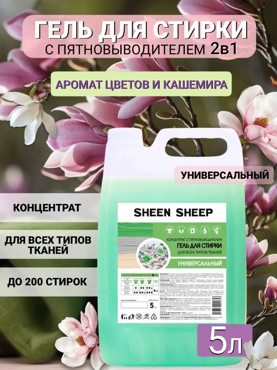 Гель для стирки концентрат с пятновыводителем аромат цветов и кашемира автомат 5 литров Sheen Sheep, это универсальное гипоаллергенное средство, которое не только эффективно удаляет пятна, но и бережно относится к вашему белью. Жидкий стиральный порошок не имеет в составе агрессивных и вредных компонентов. Он предназначенный для стирки и замачивания белых, черных и цветных тканей - хлопчатобумажных, льняных, синтетических, из смешанных волокон (кроме шерсти и шёлка). Жидкий стиральный порошок можно использовать как для машинной - автомат, так и ручной стирки в воде любой жесткости. Одним из ключевых преимуществ данного геля для стирки это его способность сохранять первоначальный цвет и текстуру ваших вещей, за счет использования специально разработанных компонентов, которые не только удаляют пятна, благодаря пятновыводителю, но и защищают ткани от износа и потери яркости. Кроме того, средство полностью выполаскивается, что делает его экологичным, гипоаллергенным, безопасным даже для стирки детского белья (0+), и людей с чувствительной кожей. Для достижения наилучших результатов, просто добавьте необходимое количество геля для стирки в отсек для жидкого порошка вашей стиральной машины. Дозировка зависит от степени загрязнения белья и жесткости воды. Для удаления трудных пятен нанести концентрат непосредственно на загрязнение перед стиркой, выдержать не менее 10 минут, при необходимости применить механическое воздействие. Рекомендуемая температура стирки от 40 до 60 градусов. Концентрированная формула позволяет расходовать меньше средства, что является более выгодным вариантом для вашей семьи, а отсутствие хлора и фосфатов, делает его безопасным для вашего здоровья и окружающей среды. Приятный аромат остаётся на одежде после стирки, добавляет приятное ощущение чистоты и ухоженности. Выбирая этот гель для стирки, объем канистра 5 литров вы получаете высокое качество и заботу о ваших вещах, наслаждаясь безупречной чистотой и свежестью надолго!