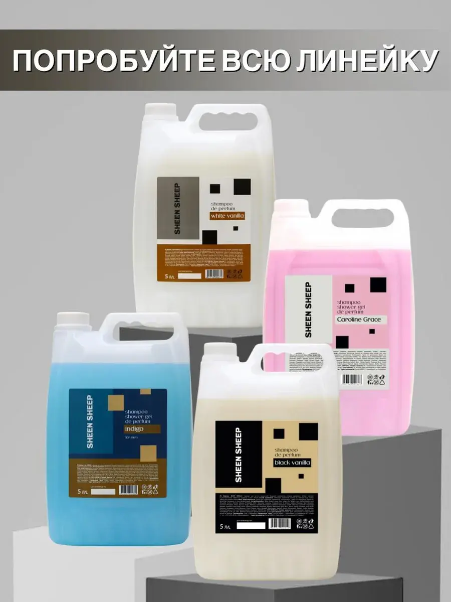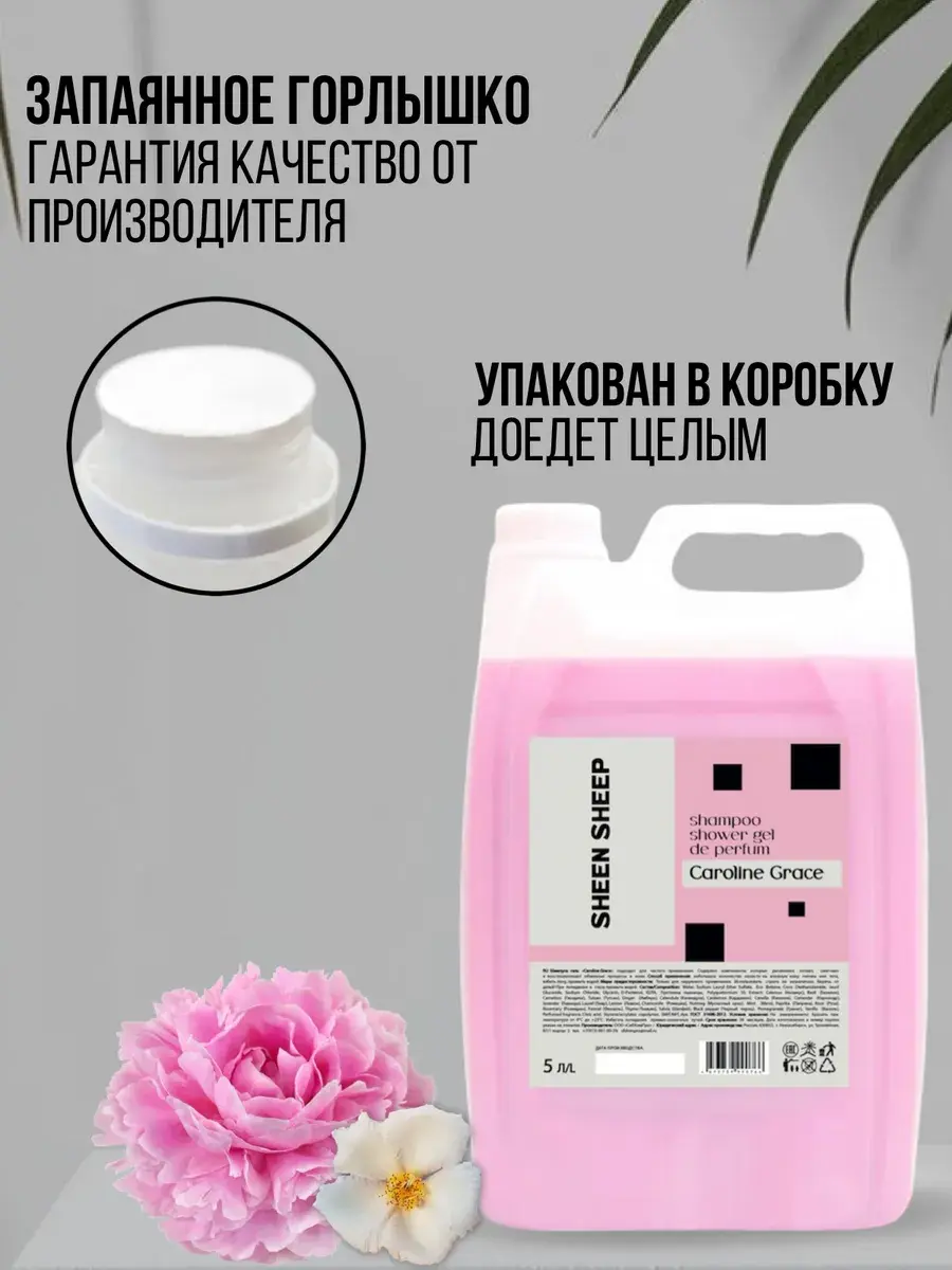 Женский парфюмированный шампунь для волос и гель для душа 5 литров «Caroline Grace» (Каролина Грейс) торговой марки SHEEN SHEEP, это средство премиум класса, которое сохраняет естественный баланс волос и кожи головы, полноценно очищает, питает, укрепляет, увлажняет, эффект заметен после первого нанесения. Нейтральный PH соответствует для использования в качестве геля для душа. В его составе ингредиенты, которые бережно очищают и промывают кожу головы и тела, не пересушивая ее, не вызывая перхоти. Активные компоненты делают волосы более гладкими послушными, снимают раздражение, помогают расчесыванию, убирают статику. Протеины пшеницы питают, восстанавливают структуру, уменьшают ломкость, в результате они становятся «живые», яркие и блестящие. Шампунь для волос имеет парфюмированный аромат по мотивам духов La Vie Est Belle от Lancôme. Аромат очень женский насыщенный, классический, немного вечерний и безумно сладкий с явными гастрономическо-десертными нотами. В основе аромата — флорентийский ирис, пачули, смородина, груша, флердоранж, ваниль и пралине. Вдохновляет и завораживает, расслабляет и дарит удовольствия от принятия душа после тяжелого рабочего дня. Он остается на волосах и теле еще какое-то время. Шампунь для волос обеспечивает салонный уход в домашних условиях. Отлично подходит в качестве геля для душа. Выгодный объем 5 литров сэкономит время и бюджет на покупке новых флаконов, а обильное пенообразование, позволит наслаждаться им дольше. Такой объем 5 л подойдет для гостиниц, отелей, спа-центров, спортзалов. Нанесите продукт на влажные волосы или тело, равномерно распределите массирующими движениями до образования пены, подержите 1-2 минуты, затем смойте. Подходит для ежедневного применения. При попадании в глаза промыть большим количеством воды.